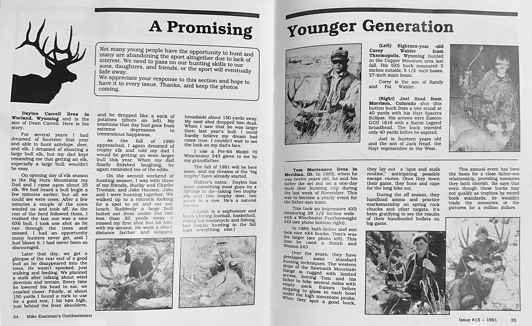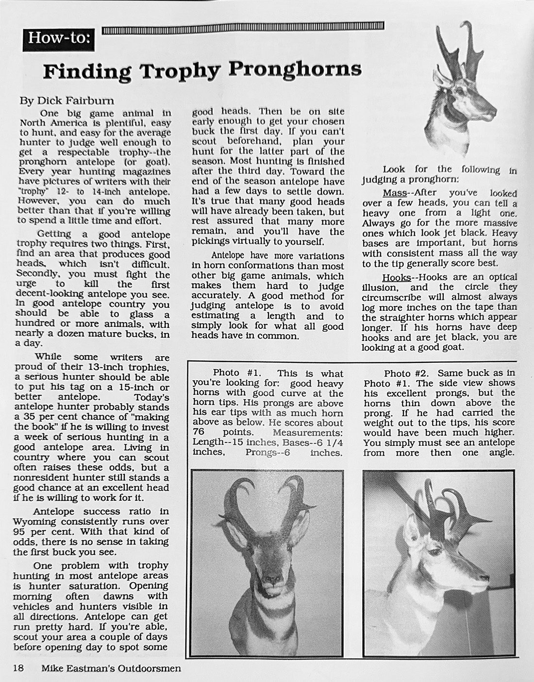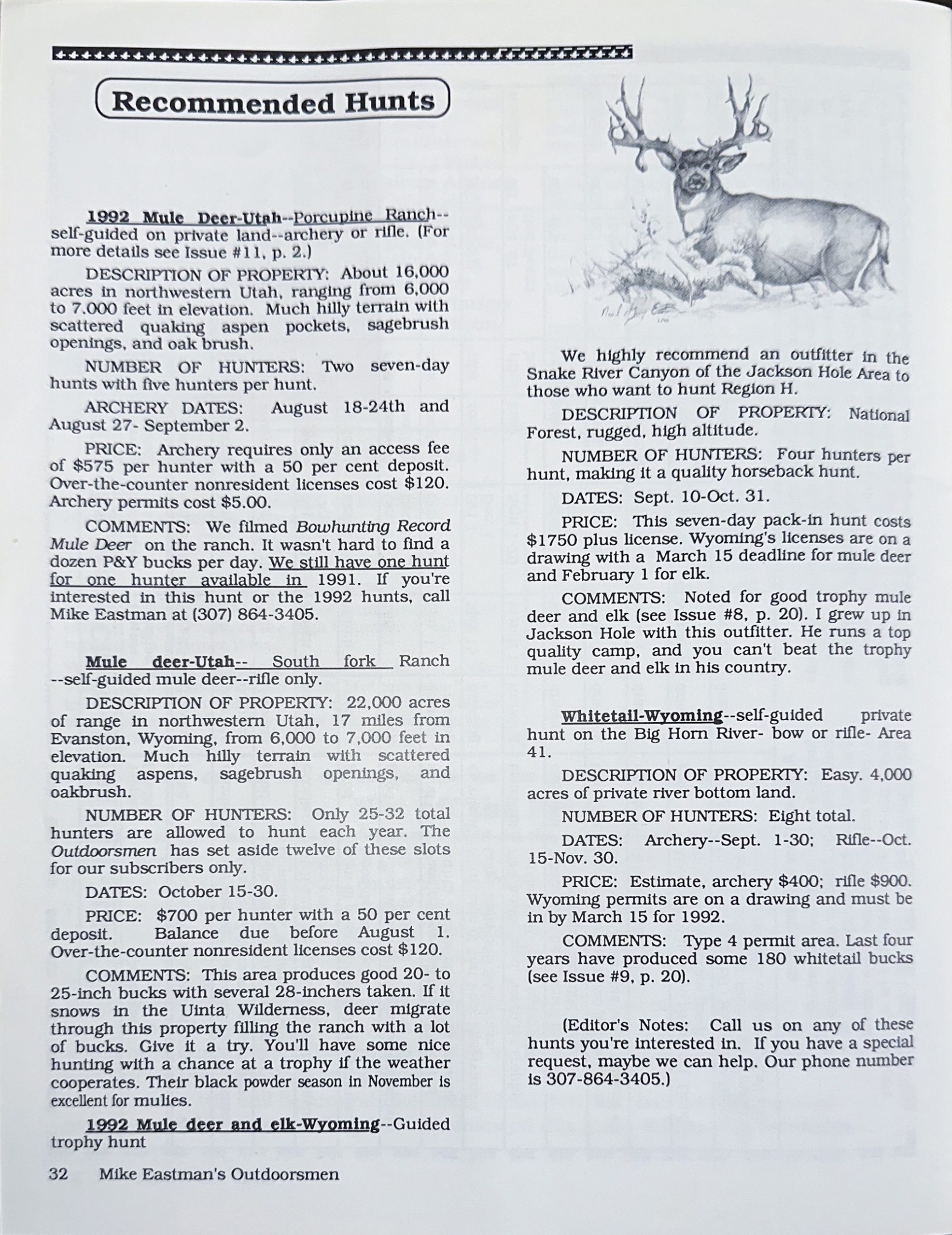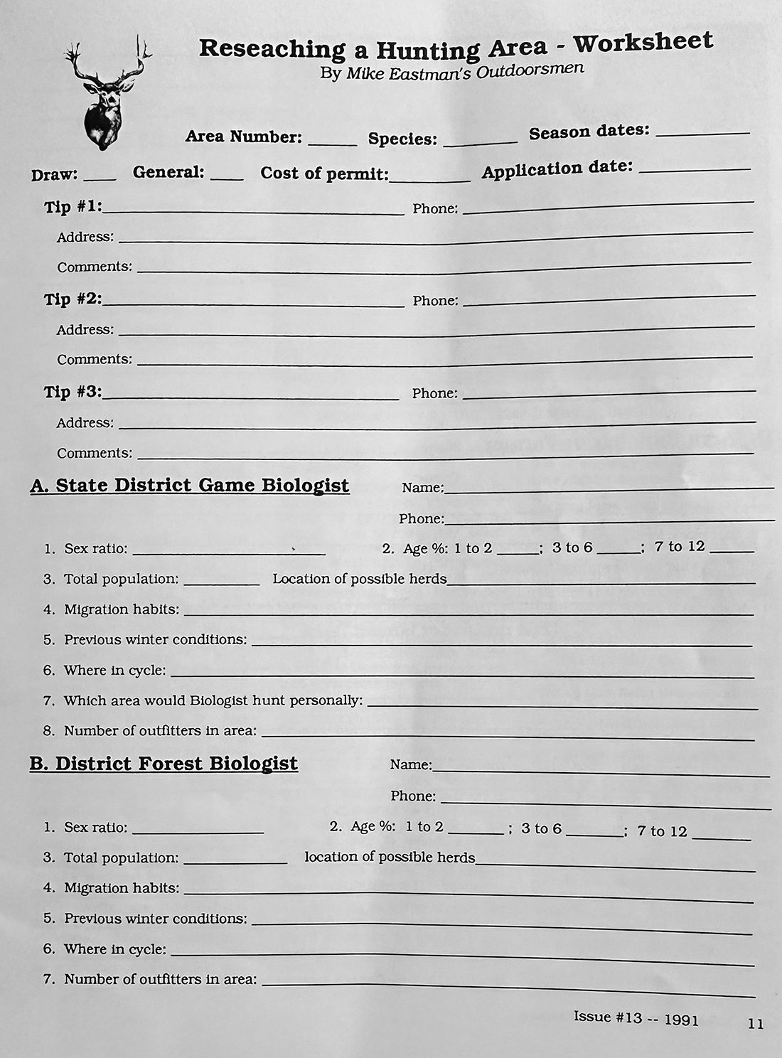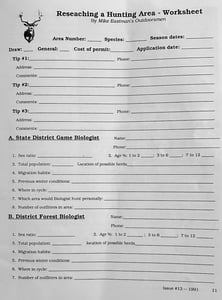 Researching A Hunting Area – Worksheet. TagHub/MRS research guide, trophy pronghorn judging article, the first HCFT, ad for Eastman Seminar, the first Younger Generation and a Recommended Hunts section