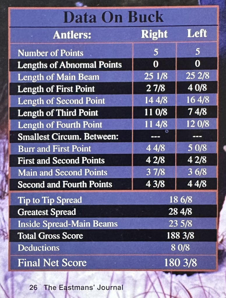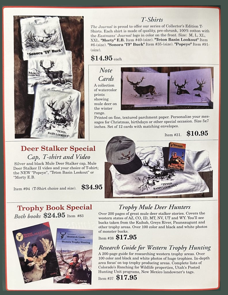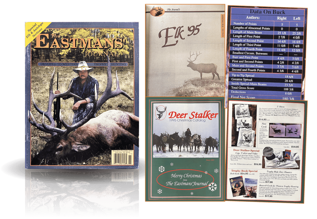 1995 | Special Elk Section w/photo credit Alan Sinner, “Deer Stalker 1995 Christmas Catalog full color insert between , first “Data On Buck” table, Headers added to color features,