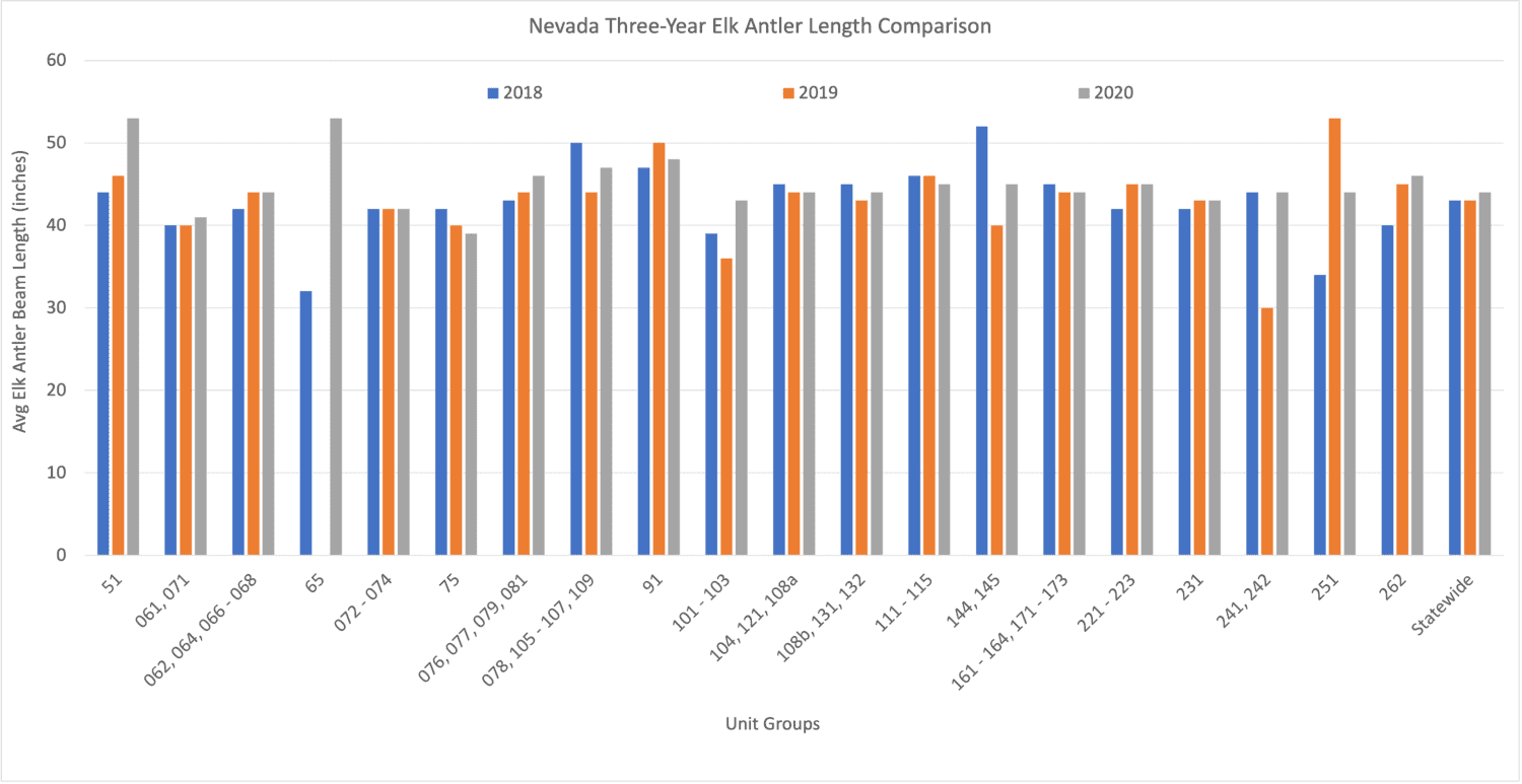 This unit group has flat been performing the last few years and in 2019 it was no different with very little coming out of Nevada that would tell me this was a subpar hunt year for the unit. A great 49% of the bulls in 2019 had 50+” main beams! Almost half of the bulls killed in this unit group were in the upper echelon of hunts. In my opinion there really isn’t a bad hunt here.