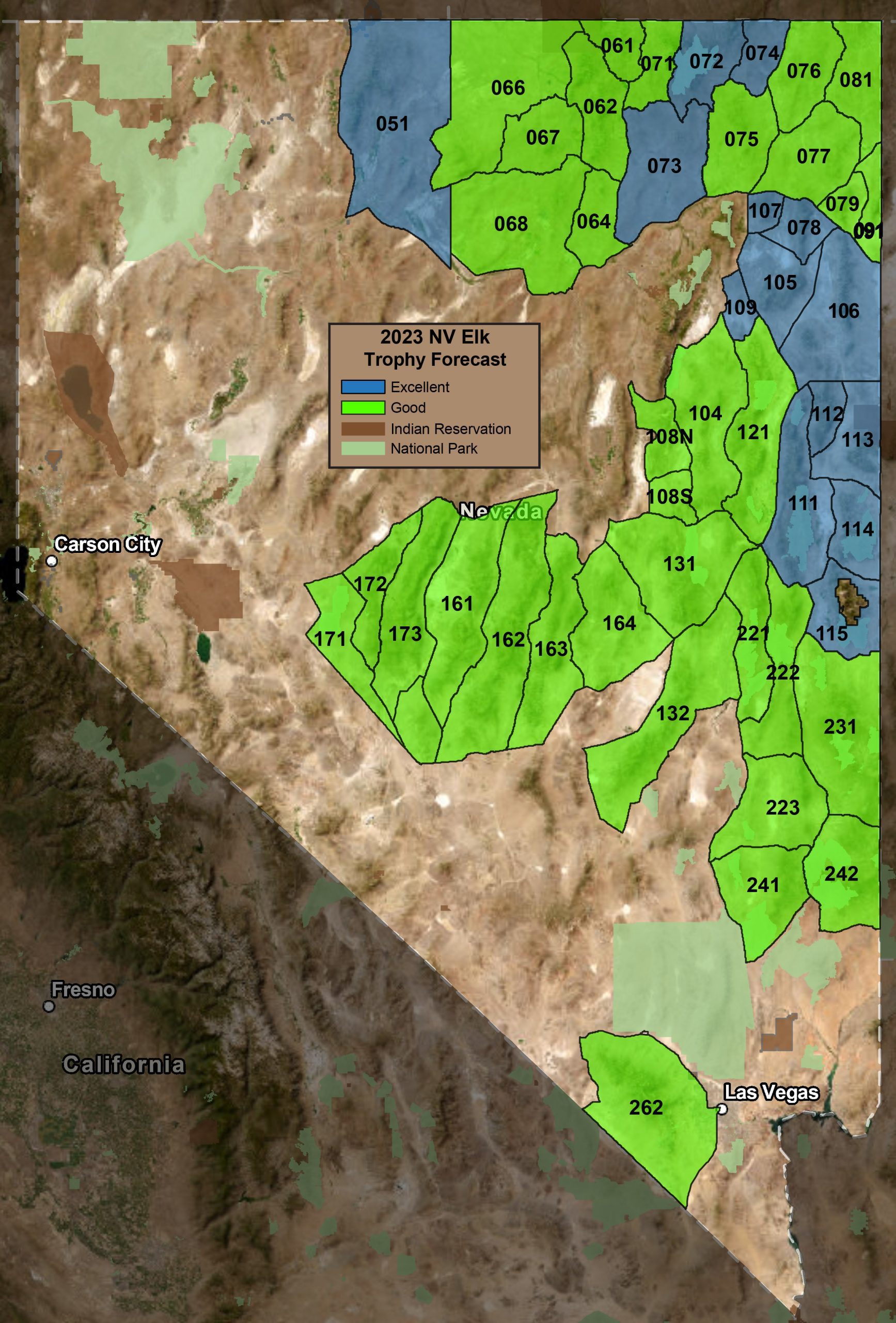 NDOW manages for approximately 1000 elk on National Forest and about 300 in the rest of the units. Bearing that in mind most of the bulls have come from the Jarbridge or surrounding areas close to or on the National Forest. If you are lucky enough to draw any of the tag options you will be happy if you plan a hunt that includes the 110,000 acre Jarbridge.