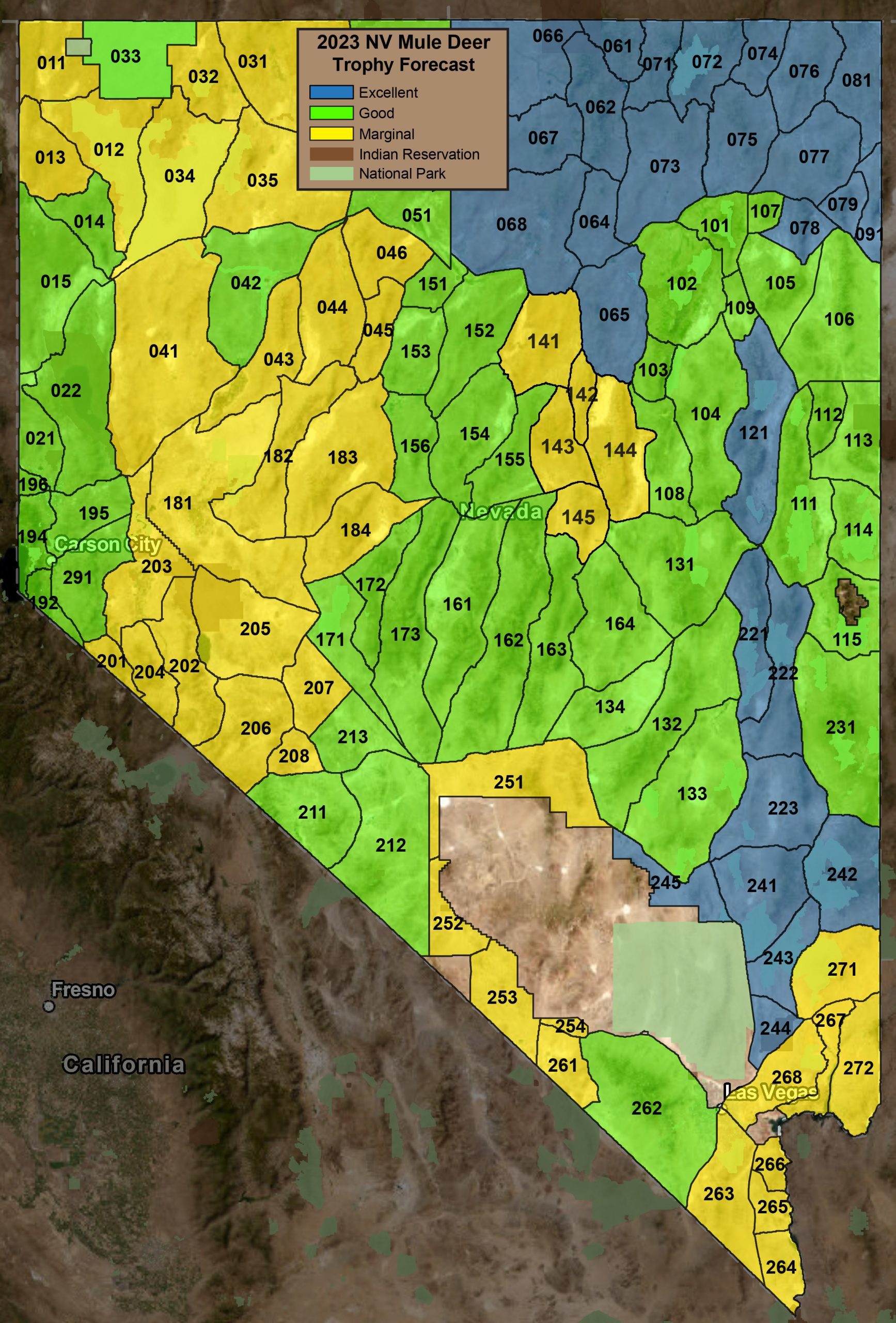 One important thing to note regarding this unit as well is that it has a small population of resident deer and is labeled by NDOW as one to keep the pressure off the resident herd. Lower hunting pressure usually is a good formula for bucks making it to maturity, even with a low population.