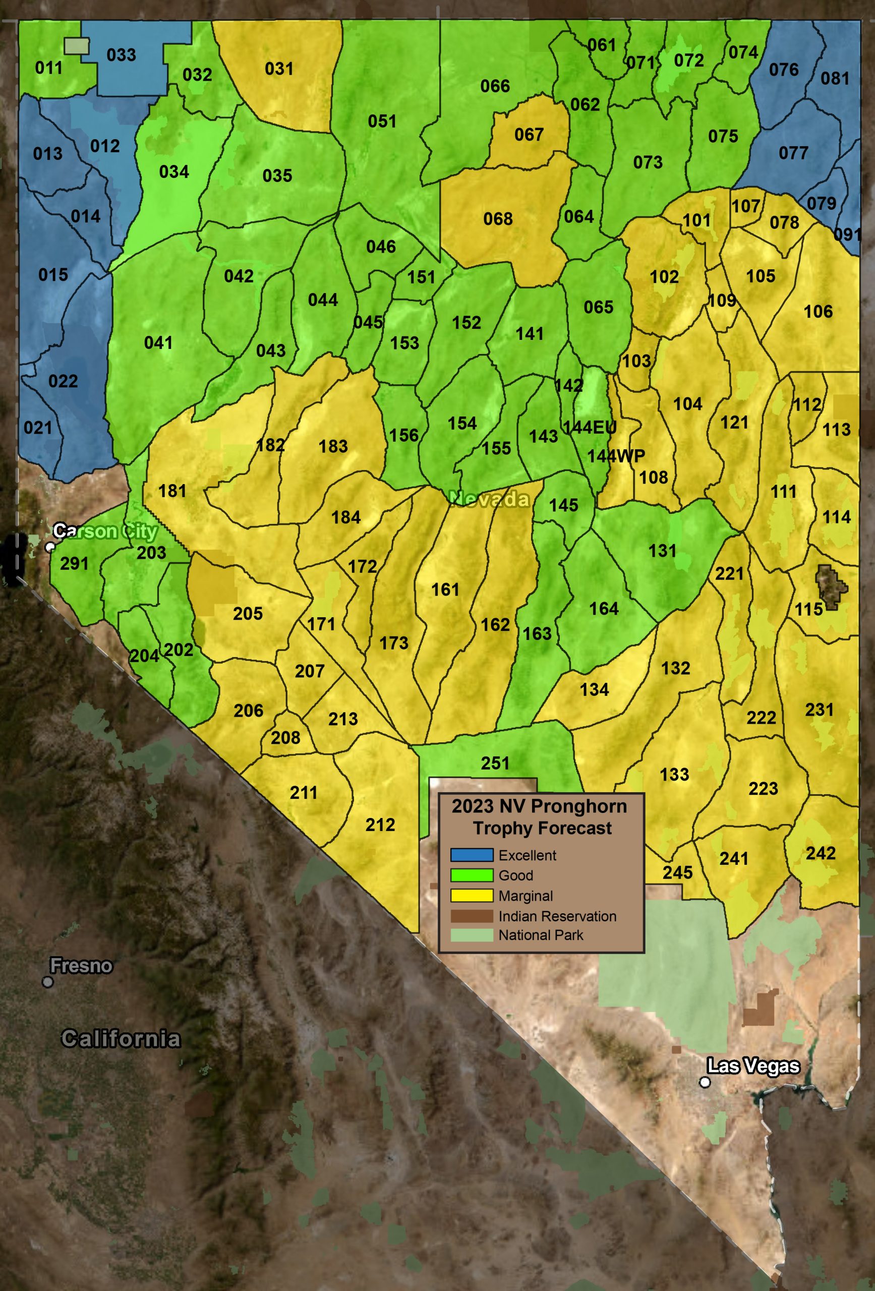 Big picture issues that NDOW is working to manage involve pneumonia outbreaks in herds that mingle with others during the rut and the ongoing drought. The issue seems to be that carriers of the disease can spread this over long periods of time. For a detailed look inside of the specific herds getting hit the hardest, you will want to look at the big game status book and then adjust your application strategy accordingly. Several herds noted have dropped over 50% in the last seven years from an overall herd population. The drought is exacerbating the population issues of those herds.