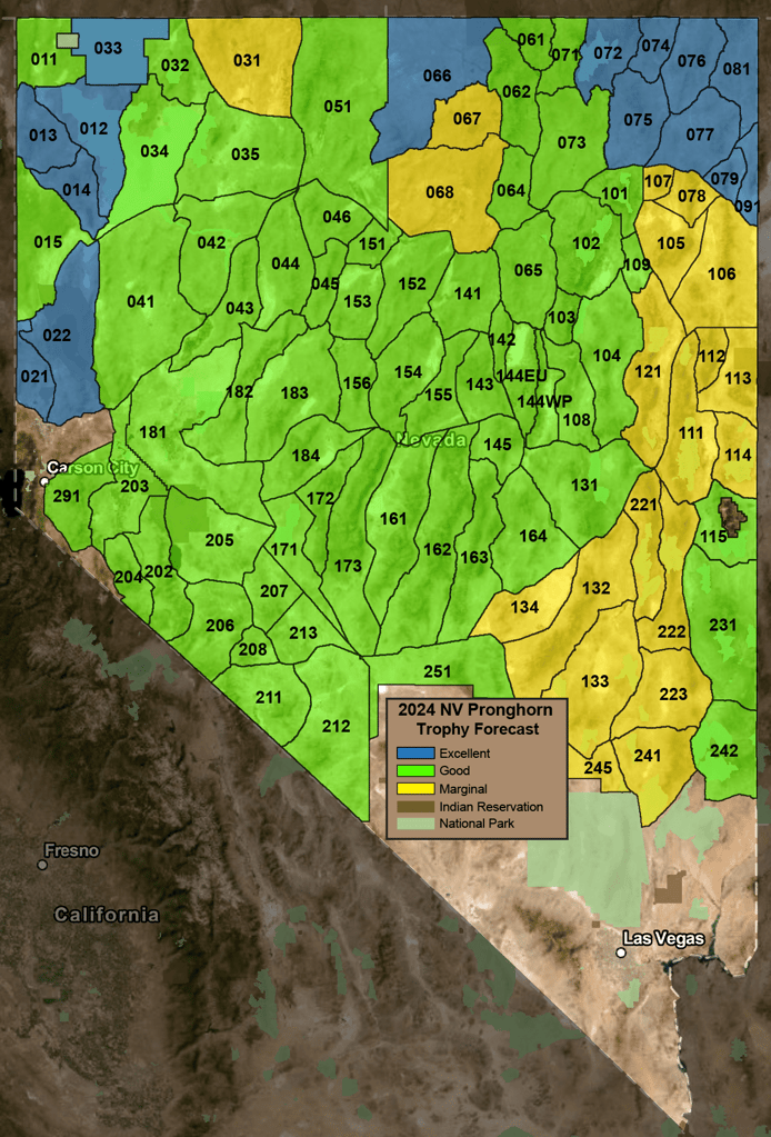 Overall trophy projections for 2021 are going to be directly tied to NDOW’s steady hand in managing the herd, drought and of course the trend in each unit with the 15”+ horn data. With all of that in mind, if you draw a tag you can expect to have a fun hunt, look over good bucks and probably take home a quality animal.