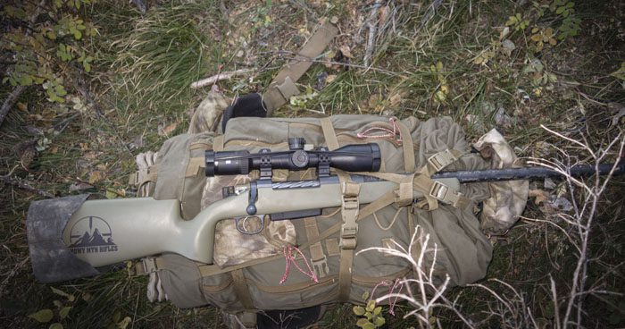 I cut the distance to where they had disappeared and started looking for a suitable place to make camp off the backside of the main ridge. I figured even if they didn’t come out that night, I would give them the next morning as well. It was around noon and I was staking my tent into one of the only flat spots I could find when I heard a bugle. I stood up and thought, no way that was a real elk, but before I could convince myself that it was another hunter, he did it again. This time it sounded much more like a real bull and I wasted no more time pondering the source. I tossed my pack over the still flat tent and grabbed my rifle. I crept over the ridge and started glassing into the partially burnt timber. They had bedded right after I saw them enter the timber. I could see him through the small openings walking as he checked his cows. After getting a good look at how big and old he appeared, I focused on finding an opening. When he paused at 425 yards in a narrow gap, I squeezed the trigger and my Snowy Mountain Rifle proved its value again.