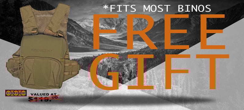 *FREE GIFT PACKAGE | Eberlestock Bino Harness – The Recon Modular Harness System is brand new and you get the first crack at the mission inspired, purpose built, backcountry tough bino harness. Act now, limited quantities.